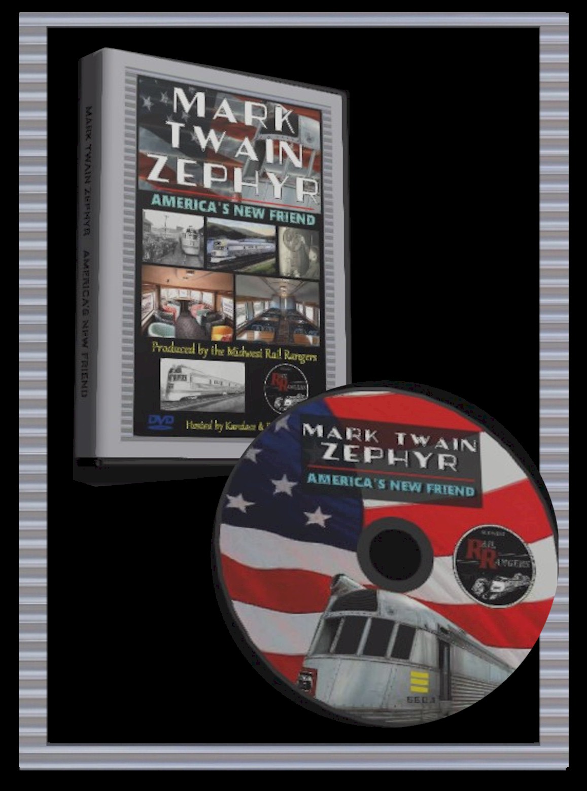 This DVD produced by the Midwest Rail Rangers features exclusive content about the history, restoration, and rebirth of the Mark Twain Zephyr. This is a great companion to the three-volume book series. The DVD is hosted/narrated by authors Kandace and Robert Tabern. Featured are over 50 interviews filmed across the country with people who have a connection to the train, including the granddaughter of Edward Budd and great grandchildren of Ralph Budd. The DVD also features exclusive Mark Twain Zephyr songs written by Deborah White and George Roberson; performed by musician Jake Clayton.