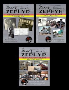 BUY TOGETHER --- AND SAVE! This is the best deal we are offering on the complete book series anywhere. You get all three volumes of the popular book series, "Mark Twain Zephyr: History, Restoration, and Rebirth". This includes: VOLUME ONE covering the construction of the Mark Twain Zephyr and its beginnings on the CB&Q, VOLUME TWO covering its later years on the CB&Q and 60 years in private ownership, and VOLUME THREE covering its move to Wisconsin and an in-depth look at the first two years of the restoration process. 802 pages in three volumes. Full Color.