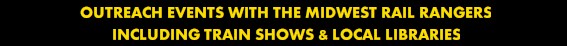 You can catch us at various Outreach Events, such as train shows for historical presentations. Some past appearances have included Trainfest in Milwaukee, Wisconsin... Mad City Rail in Madison, Wisconsin... and the Titletown Train Show in Green Bay, Wisconsin. We also partner with local libraries to host presentations and book signings about rail history. We are always looking for new outreach locations... so if you know of a great venue... let us know!
