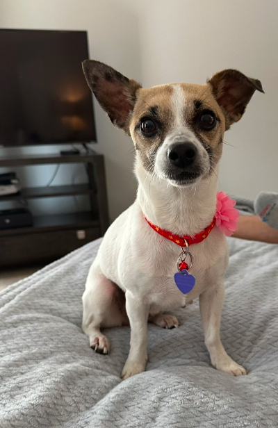 Hello, my name is Nutmeg. I am a 5-year-old, 10-lb female Chihuahua mix with