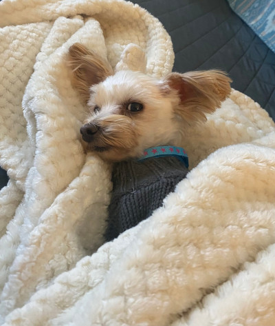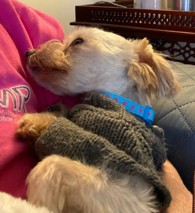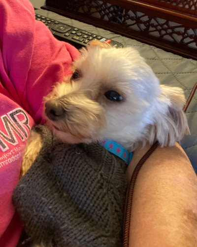 Meet Ziggy, he is a male Maltese, Yorkie mix (Morkie). He’s around 4 years old and only 4.8 pounds. He wants to make sure that everyone knows that he is a little baby who loves attention and being held. It would be best if someone is home most of the day because he is happiest with his person. Since he is so tiny, you need to be surefooted since he can easily get under foot.