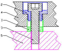 of an adjustment point. The holding force is applied by screw (3) through a keyed